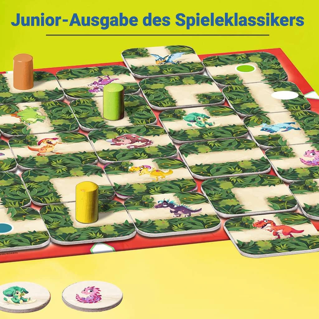 Die Spieler bewegen sich auf verschlungenen Wegen zu ihren Lieblings-Dinosauriern: Wie gelangen sie nur zum kleinen Brontosaurus oder dem gefährlichen Tyrannusaurus Rex? Aber halt: Dieser Weg im Labyrinth wurde gerade verschoben und die Hecken stehen dadurch schon wieder anders! Wer behält bei diesem Schiebe-Spaß den Überblick? Jetzt ist Konzentration gefragt. Denn der Dino-Fan, der die meisten Dinosaurier gefunden hat, gewinnt. Für geübte Spieler empfiehlt sich die Profi-Variante mit etwas schwierigeren Spielregeln. Das einzigartige Spielprinzip von Labyrinth begeistert übrigens seit über 25 Jahren Millionen von Menschen. Diese kurzweilige Version „ Dino Junior Labyrinth“ eignet sich perfekt für Labyrinth-Einsteiger.
