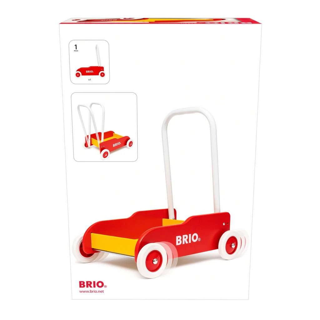 Ravensburger BRIO 31350 Lauflernwagen Rot-Gelb – Klassiker Für Kinder Ab 9 Monaten – Verstellbarer Handgriff Zum Anpassen An Die Größe Des Kindes Und Justierbare Bremse Zum Einstellen Der Rollgeschwindigkeit
