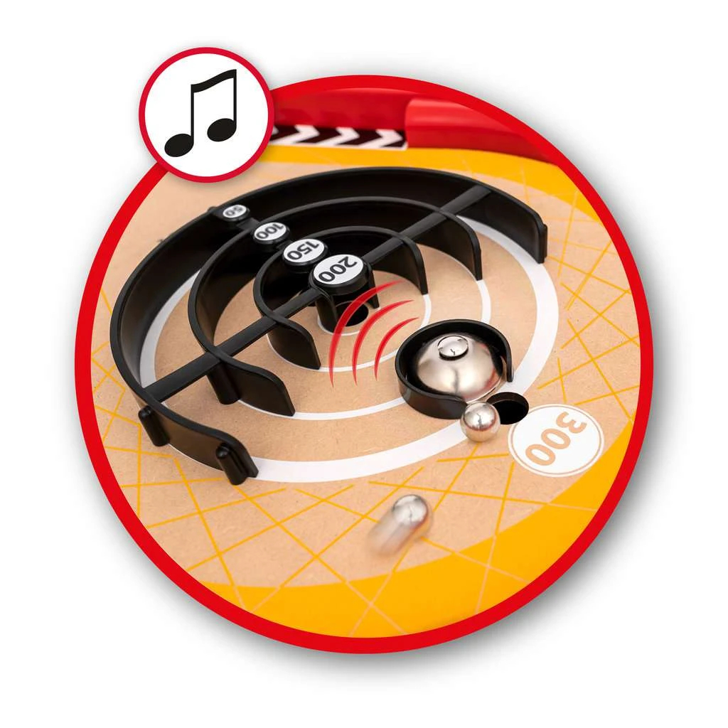 Gelingt dir der beste Trickshot? Stell dich der Herausforderung mit dem 34080 Trickshot-Geschicklichkeitsspiel. Ziele im perfekten Winkel auf dein Ziel, ziehe den Stift nach hinten und lass ihn genau im richtigen Moment wieder los! Versuche, die fünf Metallkugeln in die halbrunden Öffnungen zu bekommen und möglichst viele Punkte zu sammeln. Zu einfach? Wenn du die Herausforderung erhöhen möchtest, kannst du Hindernisse hinzufügen, nachladen und erneut schießen.