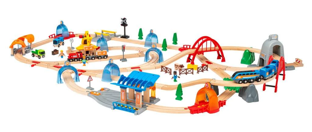 Es gibt viel zu entdecken in diesem BRIO World Eisenbahnset, vom friedlichen Bauernhof auf dem Land, wo die Tiere gut umsorgt werden, bis zur betriebsamen Verladestation, wo die Fracht verladen wird.