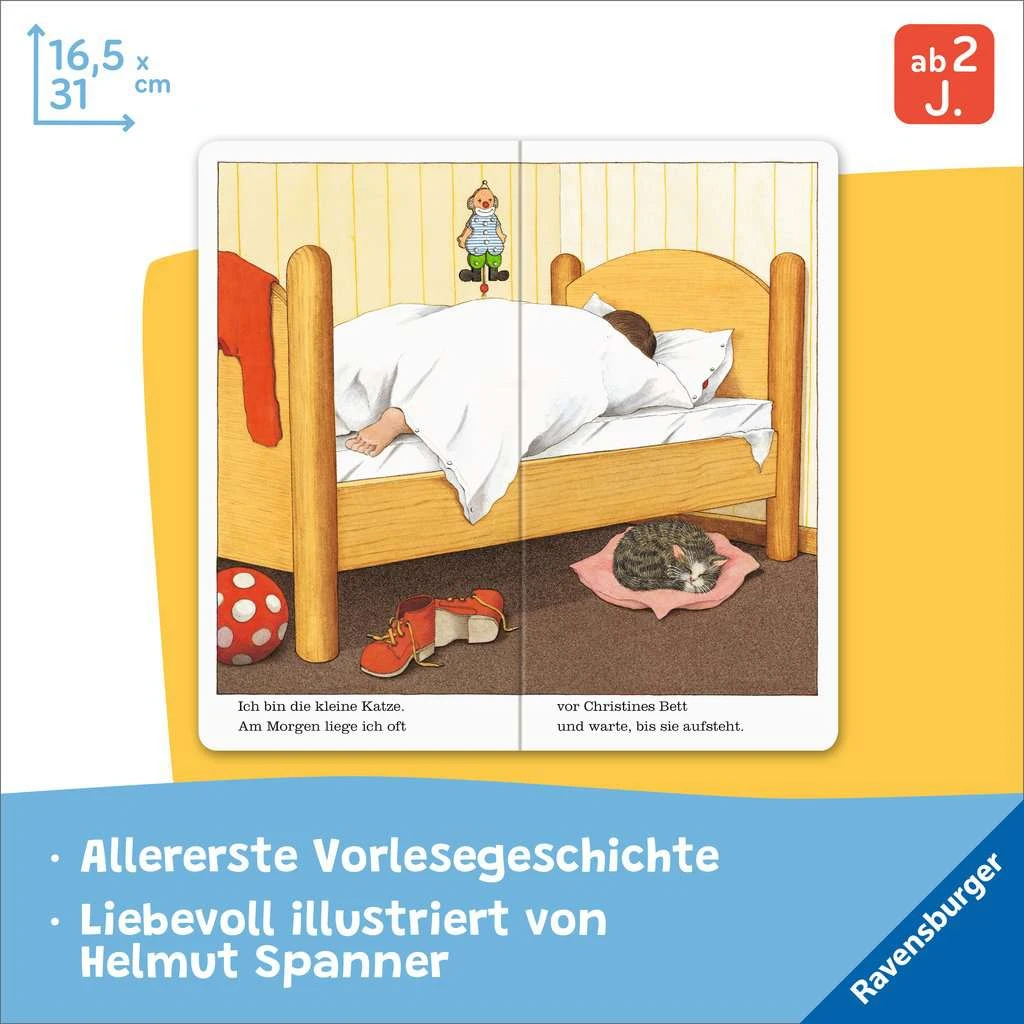 Die kleine Katze macht einen Ausflug in den Garten und erlebt viele kleine Abenteuer: Sie begegnet einem stacheligen Igel und besucht ihren Freund, den Hasen. Sie jagt eine Maus, die sich nicht fangen lässt, und rettet sich vor dem Nachbarshund aufs Dach. Am Abend ist sie froh, wieder im warmen Haus zu sein. Eine kleinschrittig erzählte erste Vorlesegeschichte, optimal abgestimmt auf die Wahrnehmungsfähigkeiten und die emotionale Entwicklung der Kleinsten.Dieses Buch ist ein zeitloser Klassiker im Kinderzimmer und begeistert seit Jahrzehnten Kinder und Erwachsene.