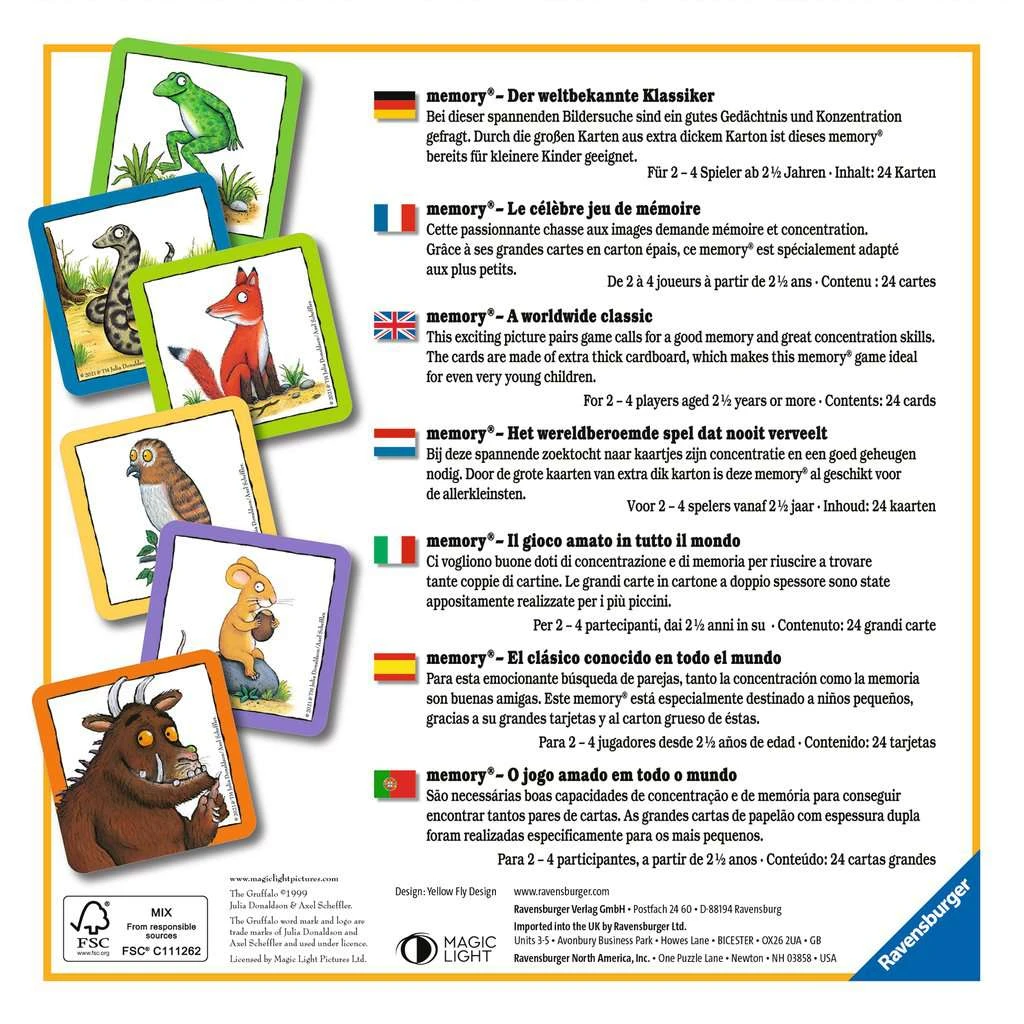 My first memory® wurde speziell für kleine Kinder entwickelt. Die großen, dicken Karten sind für Kinderhände hervorragend geeignet. Mit dem Grüffelo macht die Suche nach den passenden Bildpaaren großen Spaß und spielerisch werden dabei Gedächtnis und Konzentration gefördert! Verschiedene Spielmöglichkeiten sorgen für Abwechslung.