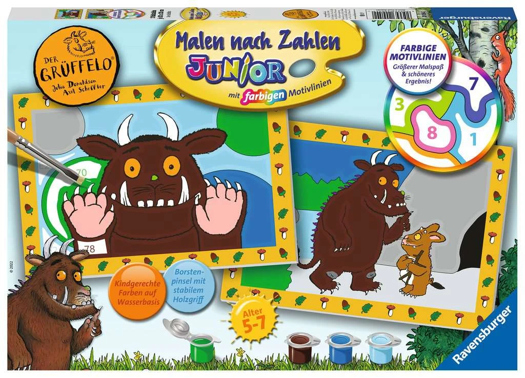 Mit den Junior Malen nach Zahlen von Ravensburger lernen die Kinder Flächen sorgfältig auszumalen, ihr Maltalent zu verbessern sowie feinmotorische Fähigkeiten zu entwickeln. Am Ende stehen Freude, Stolz und ein Erfolgserlebnis, das die Lust am Weitermalen weckt.