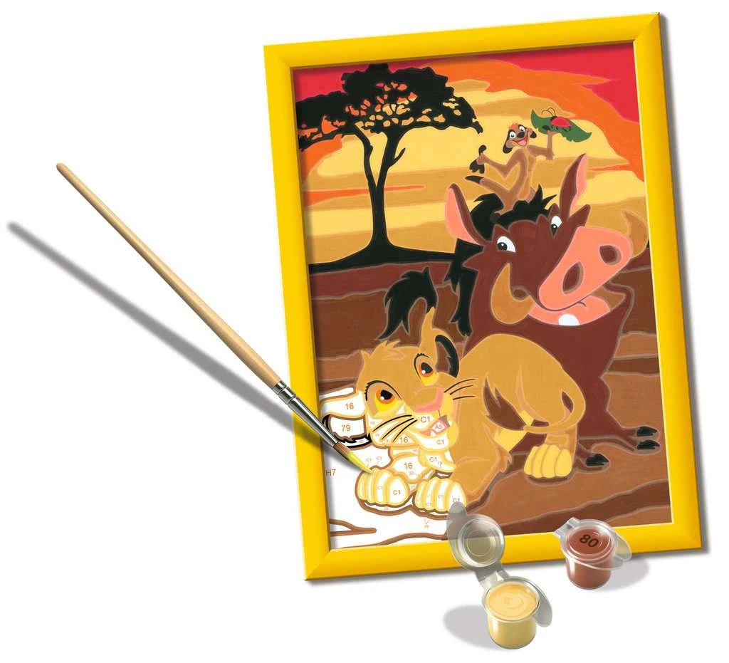 Dank der farbigen Motivlinien, können die Kinder das ganze Motiv Der König der Löwen und die Farben schneller erkennen. Der Pinsel hat eine gute Führung und so entsteht nach und nach ein perfektes Bild.