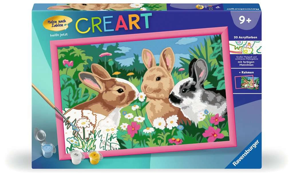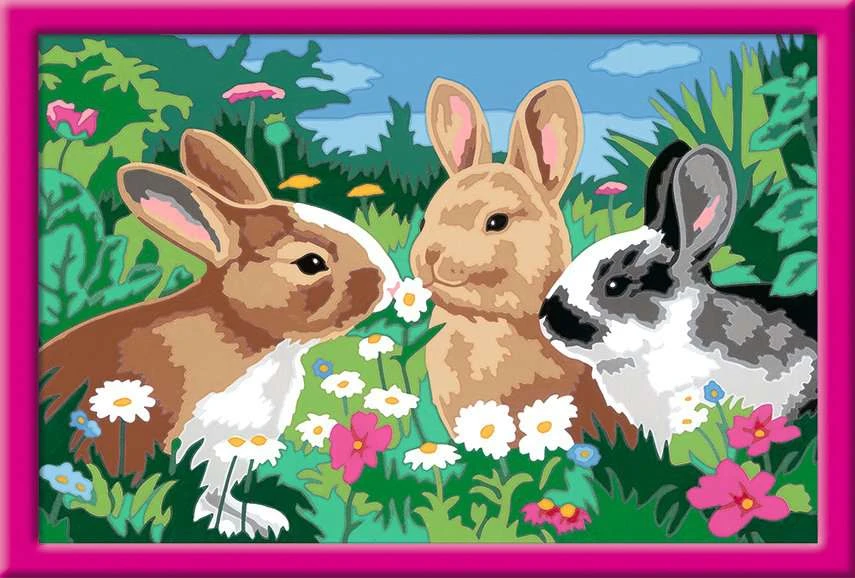 Dank der farbigen Motivlinien, können die Kinder das ganze Motiv Putzige Häschen und die Farben schneller erkennen. Der Pinsel hat eine gute Führung und so entsteht nach und nach ein perfektes Bild.