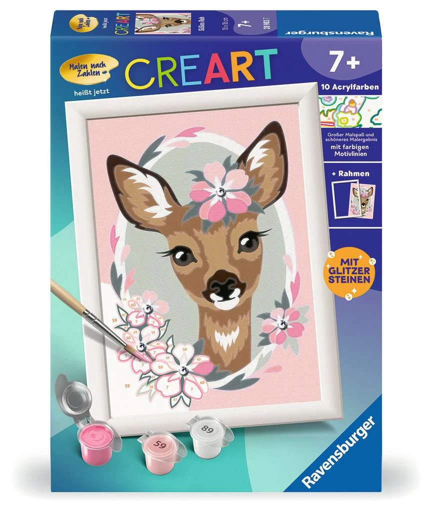 Dank der farbigen Motivlinien, können die Kinder das ganze Motiv Süßes Reh und die Farben schneller erkennen. Der Pinsel hat eine gute Führung und so entsteht nach und nach ein perfektes Bild.